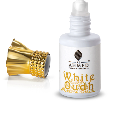 Al Ahmed Premium White Oudh Attar – a rich, alcohol-free perfume oil with a refined blend of soft woody and musky notes, offering a long-lasting unisex fragrance of elegance and purity.